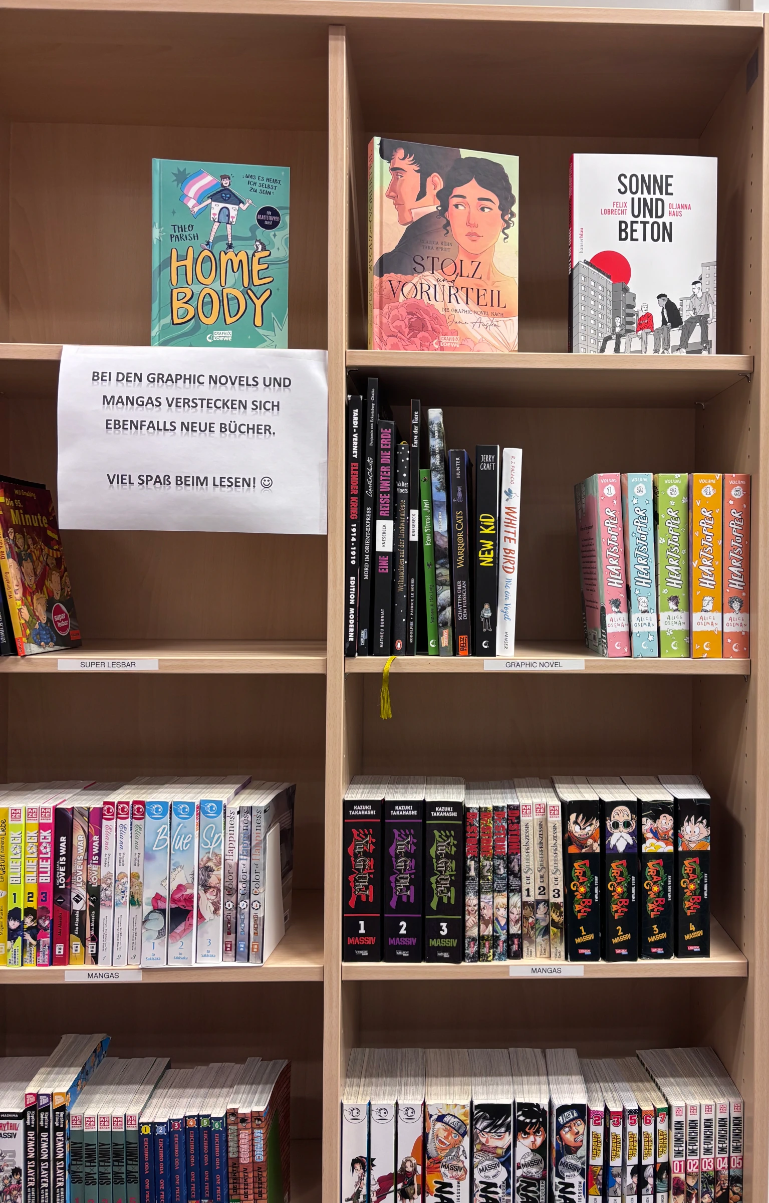 Wir haben nun einige neue Mangas, Romane und Sachbücher. Diese findet ihr aktuell alle ausgestellt in der Bücherei und sie sind ab sofort zum Ausleihen verfügbar.